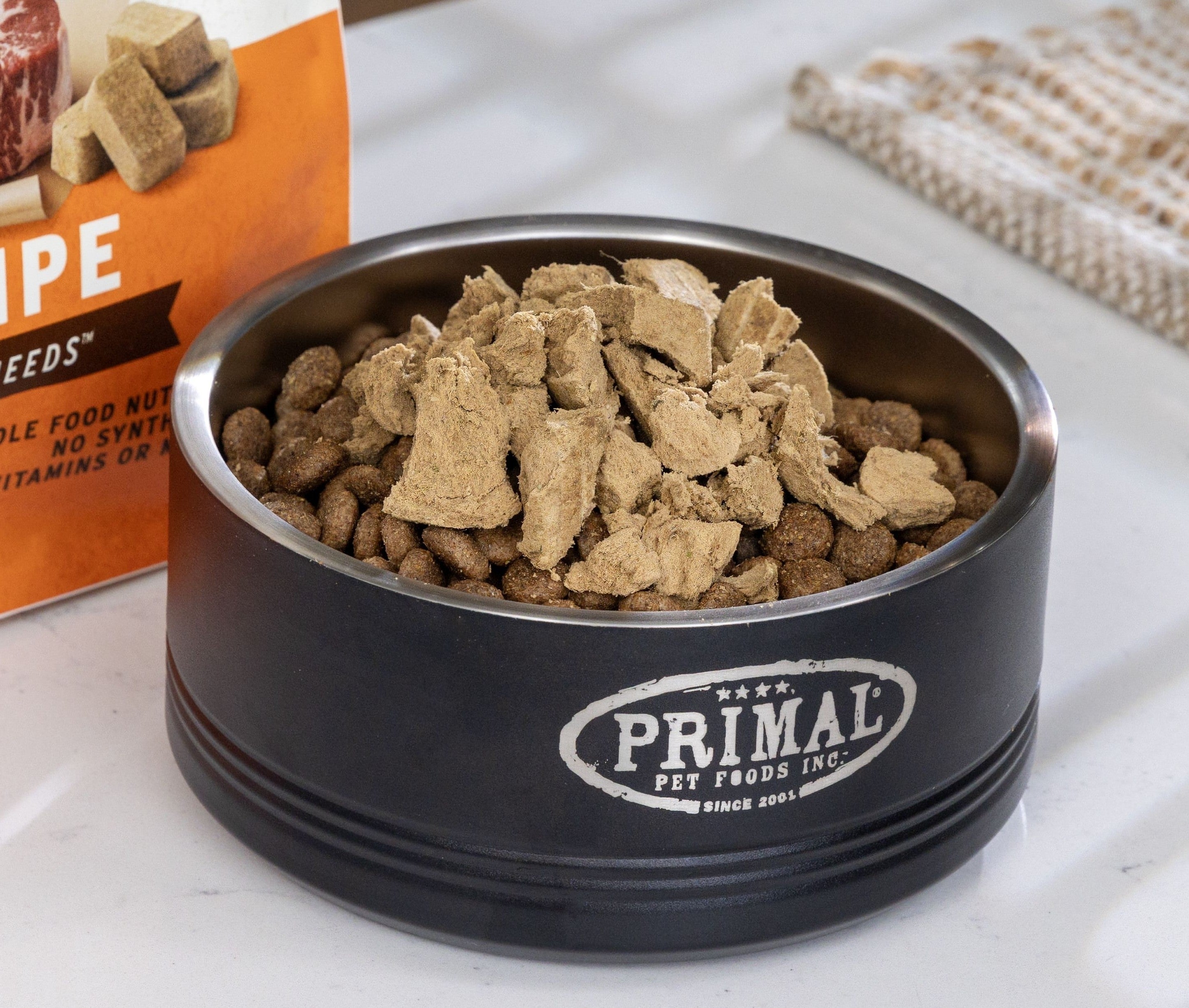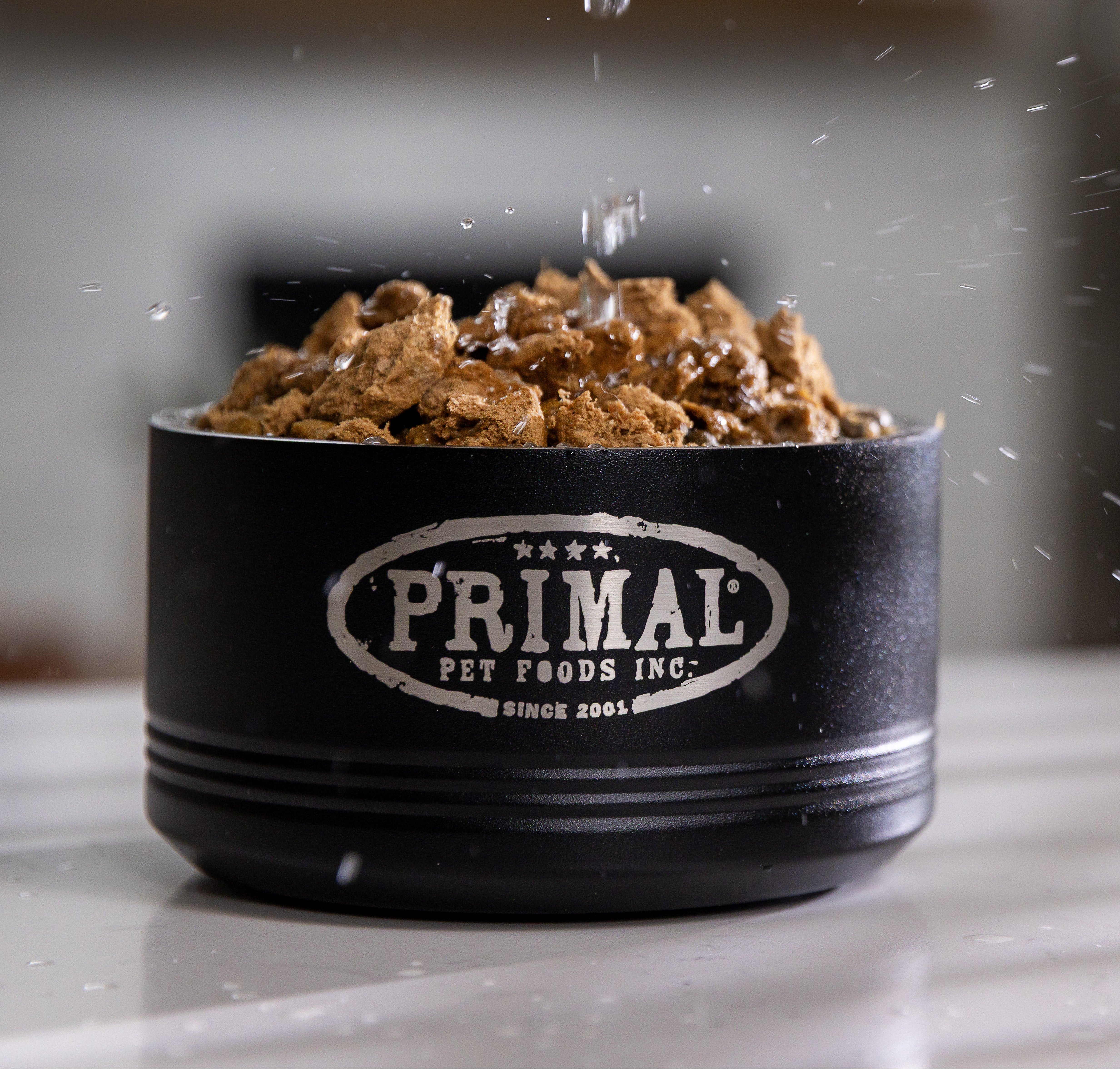 To prepare our Freeze-Dried Raw Nuggets for your dog: 1. Crumble the desired number of nuggets into your dog's bowl. 2. Hydrate by adding warm water, Primal Bone Broth, or Primal Raw Goat Milk. We recommend one tablespoon of liquid per nugget. 3. Serve and enjoy!Freeze-Dried Raw Nuggets can be served as a full meal or used as a topper or mix-in with your dog’s current diet. Serve in stainless steel bowls, as materials like plastic and porcelain can harbor bacteria over time.