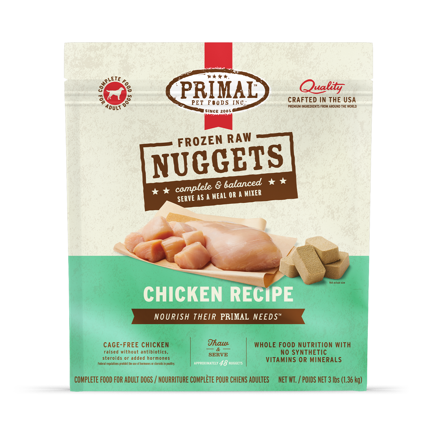 Keep product frozen until ready to thaw and use. After portioning, immediately place bag into freezer. Primal Nuggets will thaw in approximately 10 hours of refrigeration and will maintain optimum freshness for up to 7 days.