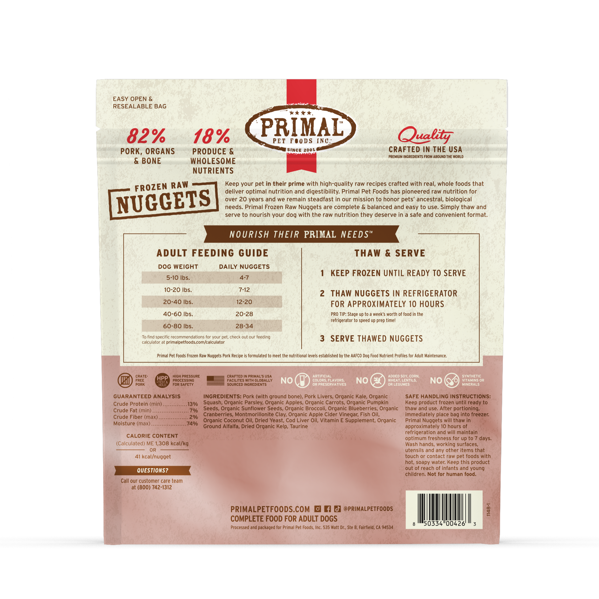 Keep product frozen until ready to thaw and use. After portioning, immediately place bag into freezer. Primal Nuggets will thaw in approximately 10 hours of refrigeration and will maintain optimum freshness for up to 7 days.