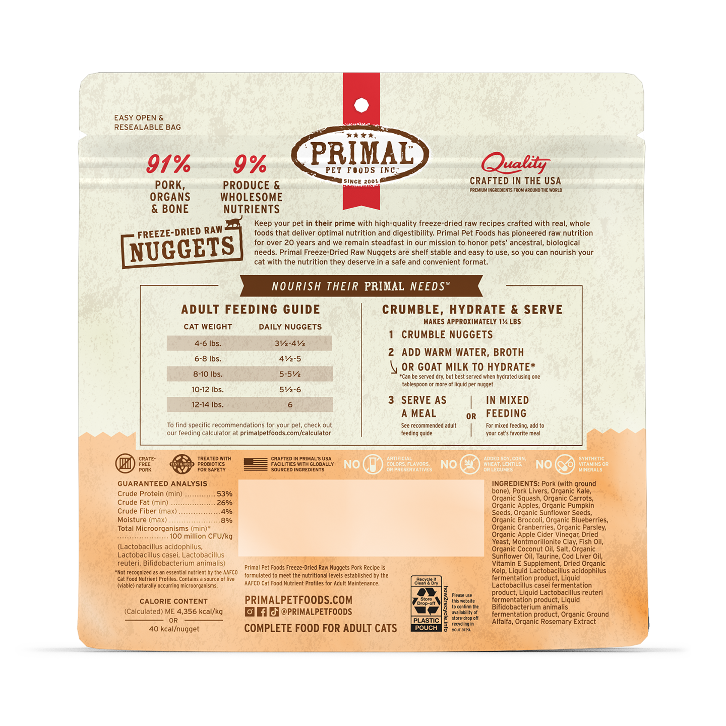 Once rehydrated, keep refrigerated and feed within 5 days for optimum freshness.