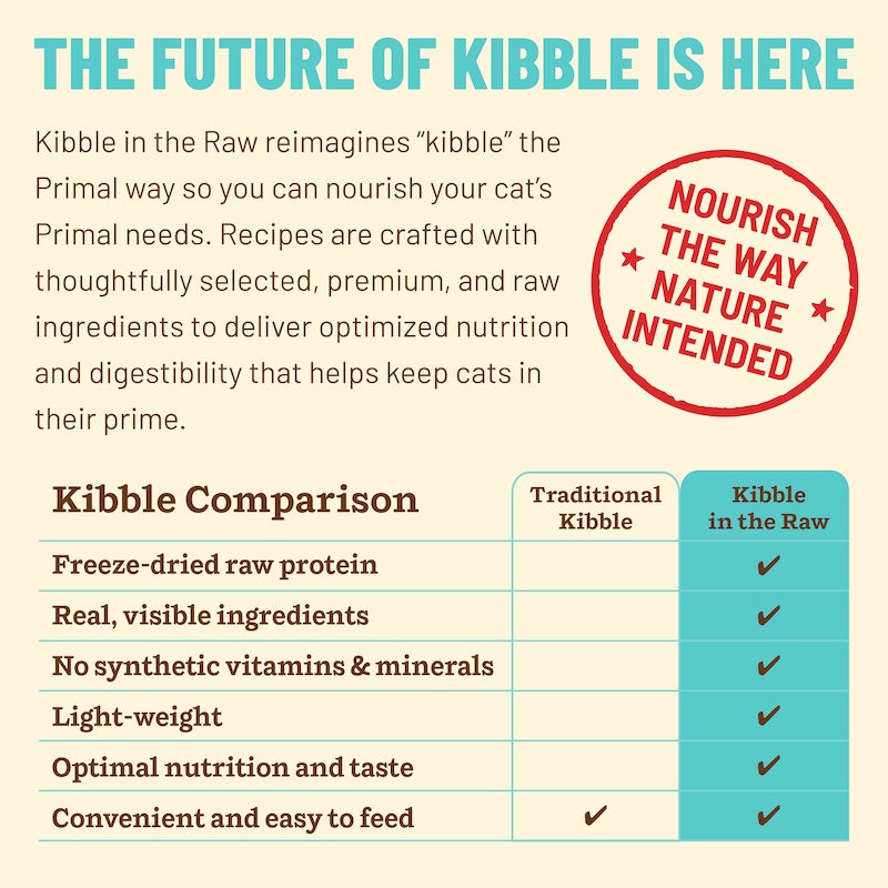 - Light doesn’t mean less. Kibble in the Raw is more nutrient dense than traditional kibble, so you get more out of every pound.