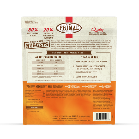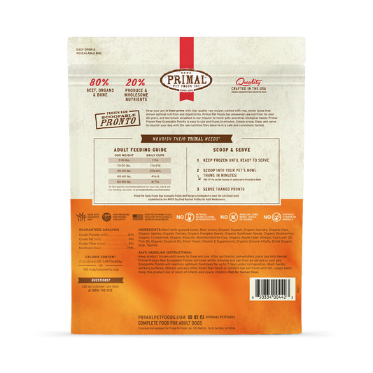With Primal’s Frozen Raw Recipes, you can give your dog the transformative health benefits of a raw, whole-food diet without the inconvenience of having to mix, measure, or chop ingredients. Our frozen raw dog food features a variety of proteins and real, whole ingredients in three convenient formats to keep your dog in their prime.