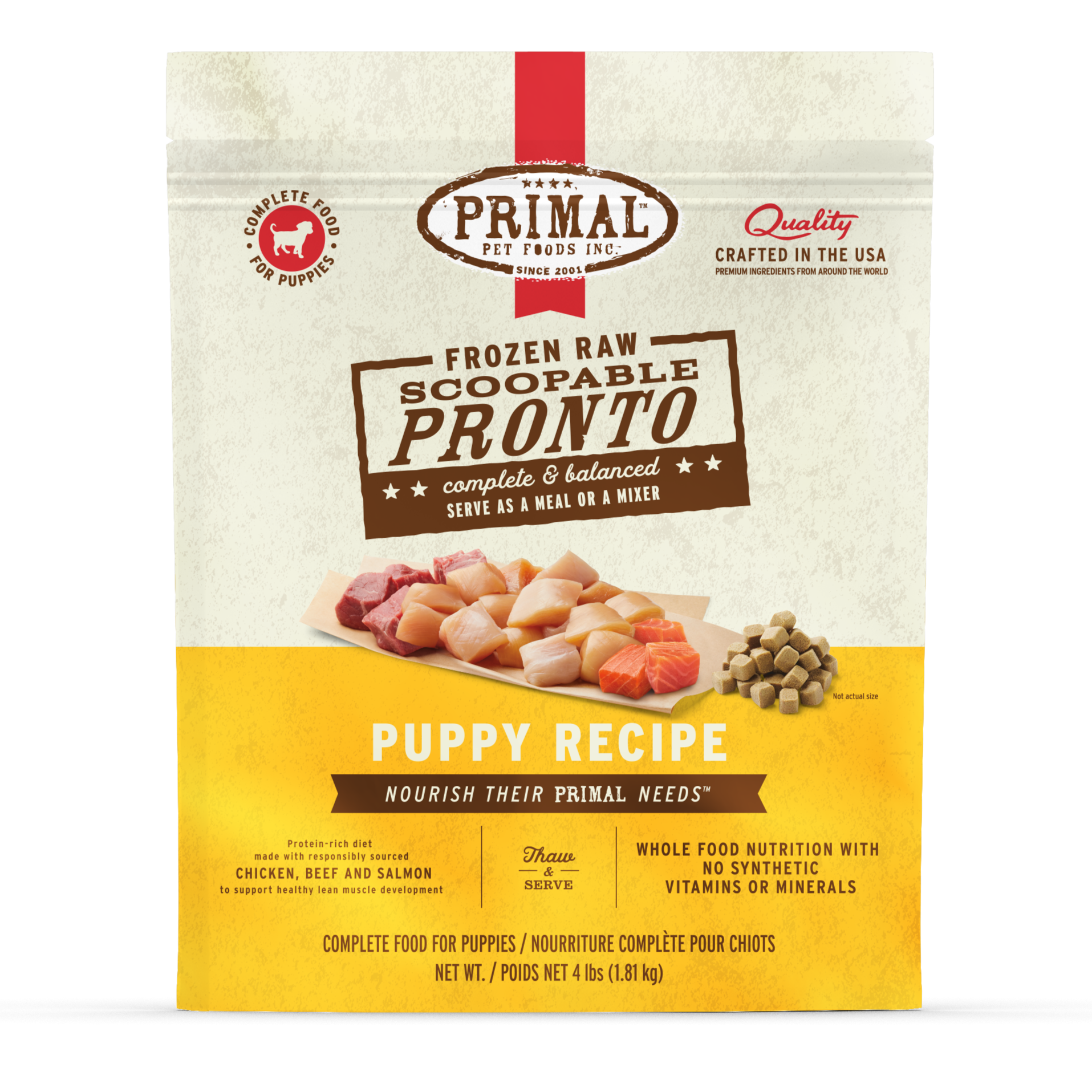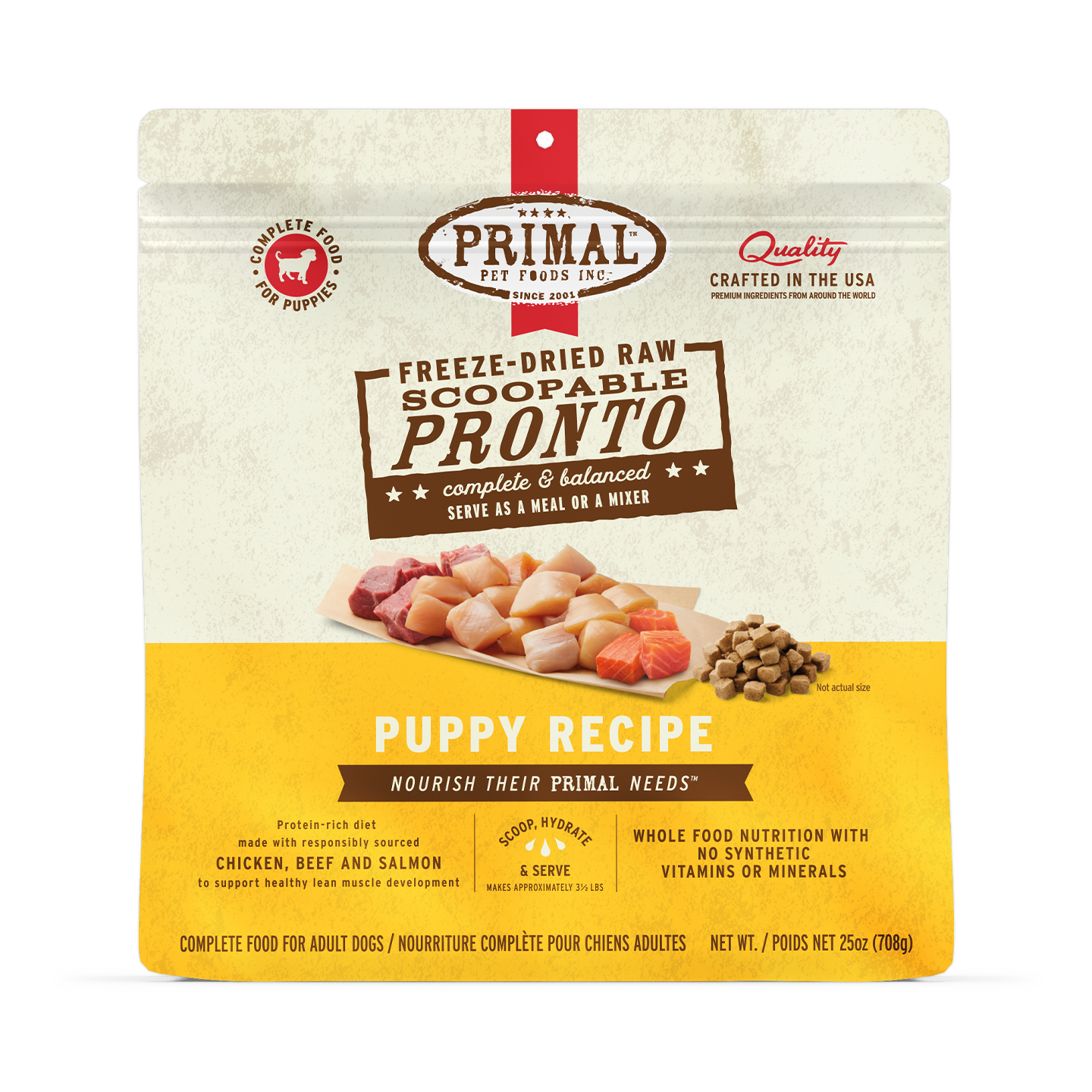 Primal’s puppy recipes are specifically formulated to meet precise nutritional requirements for young dogs, including large-breed puppies.