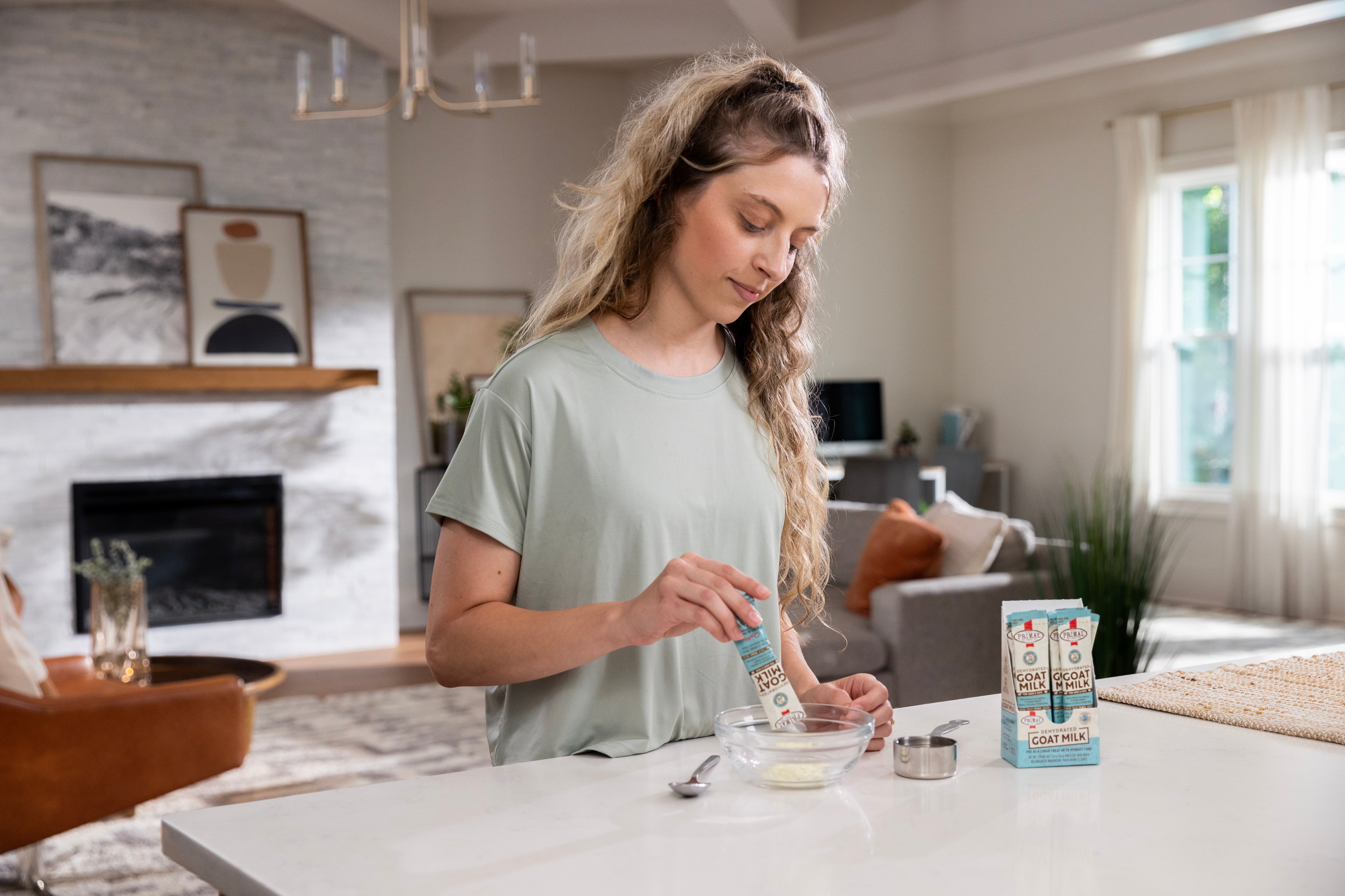 Dehydrated goat milk is shelf-stable and should be kept in a cool, dry place.