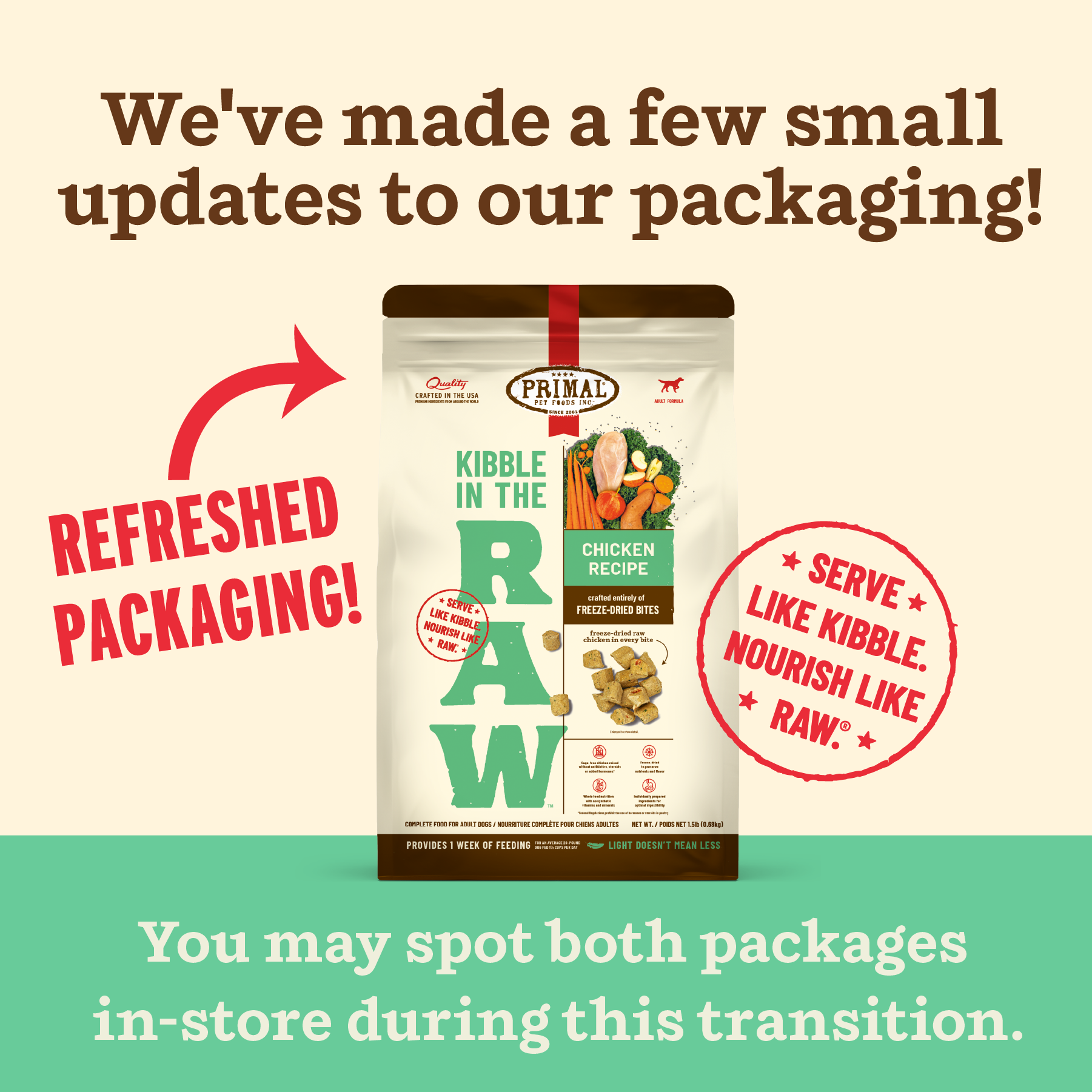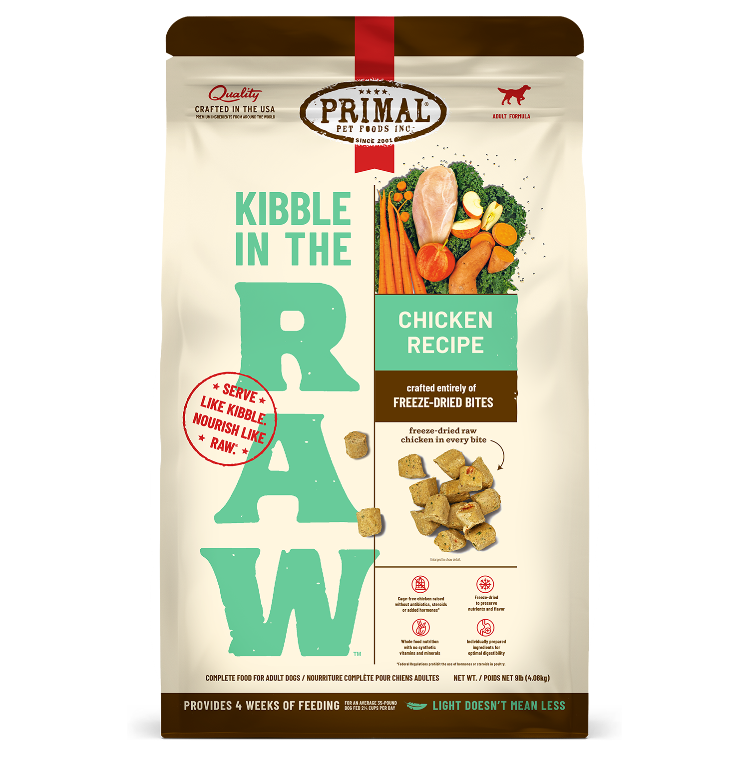 Keep bag sealed and store in a cool, dry place. Keep Kibble in the Raw separate from other foods. Kibble in the Raw does not require refrigeration. Be sure to seal bag completely after opening.